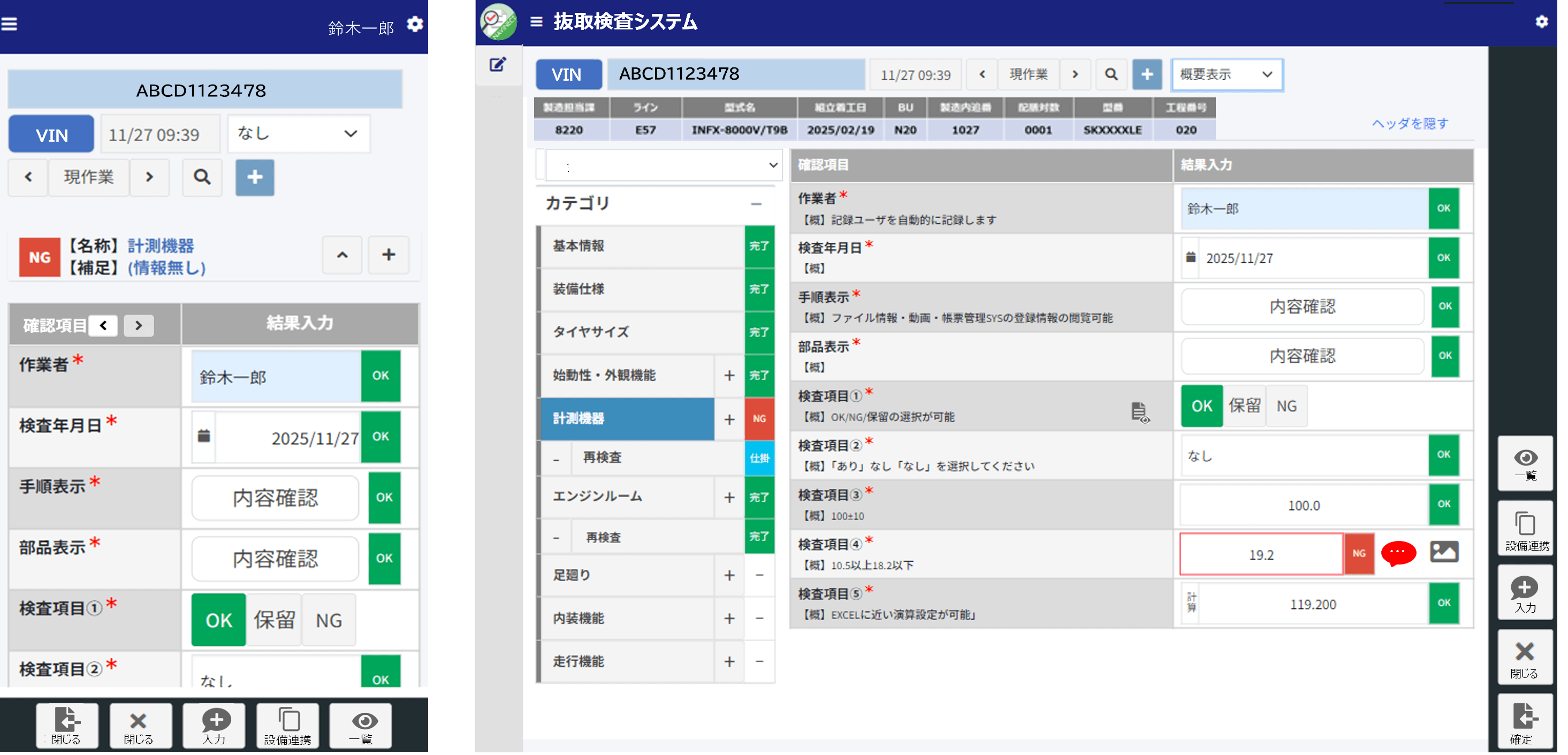 3. 検査実施・IoT自動取得 タブレット等の画面指示に従い検査。設備からの自動取得や、写真・コメントもその場で記録します。