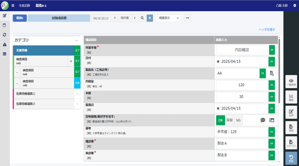 同一アプリ内での手順書管理や柔軟な結果表示に加え、入力値を改ざんできないデジタルデータとして保管することで、記録の信頼性を高めることが可能です。